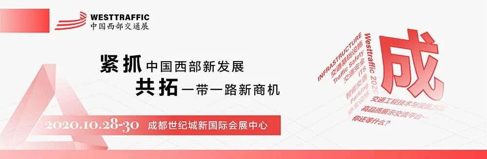 WESTTRAFFIC 2020中国西部·成都国际交通工程设施展览会将于2020年10月28-30日在成都世纪城新国际会展中心举办,西部地区唯一交通工程设施行业的高度专业度展览,展览面积12000平米,预计200家展商,专业观众预计15000人。届时,欢迎业界同仁,踊跃参加!