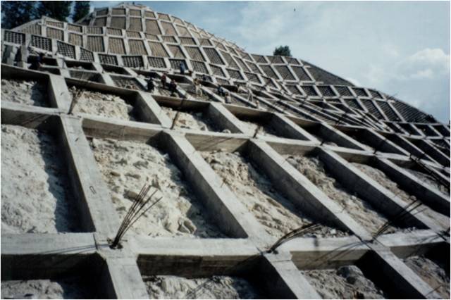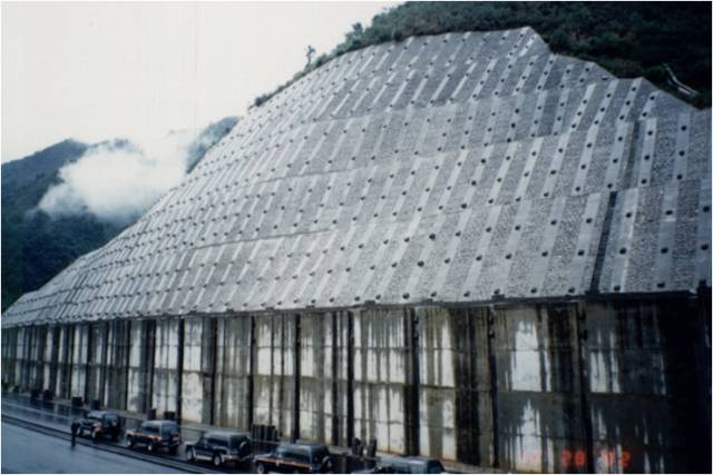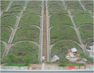 1、公路边坡是将地质体的一部分改造成人为工程设施,因此其稳定性取决于自然山坡的稳定状况(稳定、不稳定、极限平衡)、地质条件(地层岩性、地质构造、坡体结构、岩体结构、水文地质条件、风化程度等)和人为改造的程度(开挖深度、坡形、坡率等)。2、人工边坡是对自然坡体的改造,改变了自然坡体的应力状态和地下水的渗流条件,而且是在短短几个月内改造完成的。自然坡体的应力调整有一个过程,强度低的软弱岩层调整较快,常在施工期就发生变形;强度高的坚硬岩层调整较慢,或可自身稳定,或在1~3年后发生变形。只有当人工边坡对其改变不大时,才可保持稳定,否则就会发生失稳,甚至引起自然坡体的破坏。3、自然山坡和人工边坡都处在各种自然营力的作用之下,如阳光照射、降雨冲刷和下渗、风化和地震等。但人工边坡所造成的自然状态的改变使这种作用更强烈,如开挖暴露风化加剧、破坏植被地表水容易下渗、坡体松弛、爆破震动等都使边坡更容易发生变形。4、自然条件千差万别,所以边坡设计也变得十分复杂,每个高边坡工点都需单独分析和计算,这也是目前高边坡设计尚无规范可循的原因。1、公路选线时对地质工作重视不够,没有将“地质选线”落实到实处,对已经存在的古老滑坡和潜在滑坡认识不足,将线路布设在这些地段,甚至大填、大挖,造成老滑坡复活或新生滑坡。2、对高边坡的危害认识不够,强调节约工程投资,本来可以内移作隧道或外移作桥或半路半桥的,为节省投资而造成大挖方,结果造成高边坡变形破坏,有时其治理费用比桥、隧还多。1.山区公路(特别是高等级公路)对线形和道路走向有特定的要求,也不可能一味强求优良的工程地质条件,而回避不良地质、高边坡等岩土工程问题,因此就不可避免的在近于极限平衡的天然山坡上或其内开拓修建。2、自然陡边坡本应该作工点针对性勘察设计的,因工作量大、工期紧、勘察基础资料不足,设计依据不充分,因坡形坡率设计不符合场地岩土条件,或排水与加固工程不完善,不足以保证稳定,造成挖方坡口不断向山体移动,形成高边坡。3、不科学的施工方法也是造成边坡失稳变形的重要原因,如雨季大开挖,而不及防护造成大量雨水渗入坡体,软化坡体岩土;大爆破施工破坏岩体完整性;开挖后长期暴露而不防护和加固,甚至一挖到底不加固等。防治方案的选择建立在详实的基础资料之上。必须对该段高边坡进行详细勘察。查明该路段的地层、岩性、产状、风化程度、强度特征,不同地层在边坡上的分布位置,有无软弱夹层或接触面,其产状与边坡开挖面的关系等;山坡和边坡上地下水出露位置、高程、流量变化;并取代表性岩土进行试验,为稳定分析计算提供必要的参数。由于高边坡或滑坡地质复杂性,计算的边界条件(范围)和破坏面岩土参数难以准确判定、试验和选取,使计算结果的可信度大大降低。一般认为应以工程地质分析对比法为基础辅以力学计算两者结合较为合理,前者为后者提供变形类型、范围和边界条件,后者则可得出稳定系数和作用力大小,为设计提供依据。a、从自然极限稳定坡的坡形、坡率、坡高,与人工边坡的平均坡率和坡高对比中评价其稳定性;b、从自然山坡已发生的变形类型和规模,推断人工边坡可能发生的变形类型和规模;c、从坡体结构分析人工边坡可能发生的变形类型及产生的部位(整体或局部);d、从作用因素及其变化幅度分析,主要是开挖引起坡体松弛、地表水下渗、岩土(特别是软弱带)强度降低,分析可能发生的变形类型及规模;e、从已发生的变形分析其发生机制并反演出破坏时的岩土强度参数。力学计算法有多种,只有选择与破坏类型及模式相一致的计算方法才能得出正确的结果。除顺层边坡外,可用有限元计算开挖后边坡的应力场和位移场来确定。 对土质边坡和类土质边坡可用传统的圆弧形破坏面进行计算,但沿土石层界面滑动者不一定是圆弧。岩质边坡,即使是强风化岩体,其破坏也要沿不利结构面组合,因此多为折线形,用推力传递法比较符合实际。选用的计算参数C、Φ值应根据地质情况不同而分段选取。 a、由于坡脚应力和地下水集中,加固工程应贯彻“固脚强腰”的原则,“固脚”即加强坡脚1、2或3级边坡的支撑力,“强腰”则是防止高边坡的局部失稳。既要保整体稳定,也要保局部稳定。b、高边坡设计应有完善的地表和地下排水系统,减少水对边坡稳定的影响。坡面防护应在稳定的边坡上设置,通过坡面防护的设置可以达到减少或阻止水流冲刷和下渗、减少水土流失、减缓或防治坡体风化、稳固浅层坡面土体的目的。A、植物防护:植被防护、三维植被网防护、湿发喷播、客土喷播等;B、骨架植物防护:拱形、人字形、菱形等圬工骨架+植草防护等;C、圬工防护:喷护、挂网喷护、圬工全防护、护面墙等;D、主、被动防护网:防治坡面岩石崩塌、滚落等危害。路基支挡加固是当边坡稳定不满足要求时采取的措施,设计应满足在各种设计荷载组合下支挡结构的稳定、坚固和耐久。预应力锚索加固适用于土质、岩质地层边坡加固,但为确保锚索工程安全可靠,其锚固段应置于岩层内。锚固段若置于土层内,则需要拉拔试验并进行个别设计。公路上锚索一般采用Φ12.7mm和Φ15.24mm钢绞线;锚索一般与其他加固结构物组合使用,如锚索抗滑桩、锚
